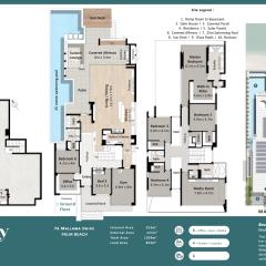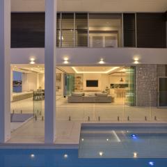 The floor plan includes six oversized bedrooms and every room has a stunning outlook. The master suite includes a feature wall, glowing coffered ceilings and Burleigh headland views. The spacious walk in dressing room has full height mirrored wardrobes surrounding a central island and a designer chandelier. The ensuite showcases stunning views beneath a glass roof.