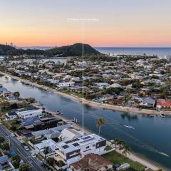 Introducing one of the best luxury homes on the Gold Coast by internationally acclaimed architect Jared Poole. Positioned on the coveted wide waterfront in Northern Palm Beach on the shores of Tallebudgera Creek with its own private beach. This home has stunning views of Burleigh Headland, the Palm Beach city skyline, and the hinterland.